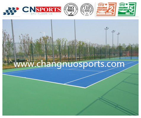 SPUのアクリルのテニス コート システムは摩耗の抵抗力がある層として変更された粘り強いアクリル樹脂を使用する。それはである